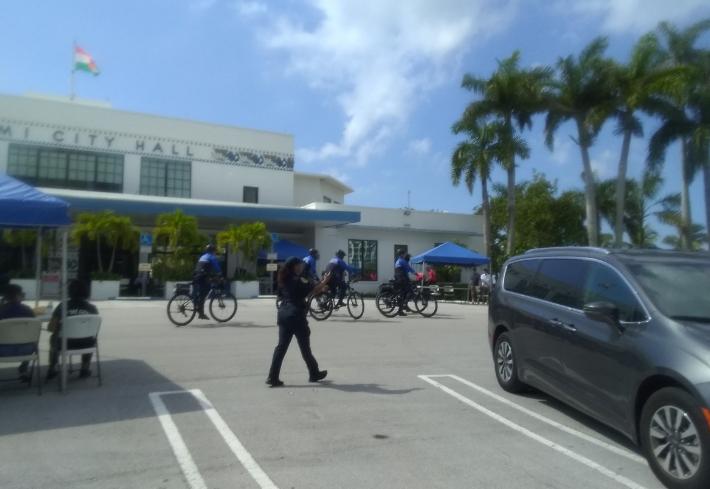 In addition, Miami Police positioned vehicles and bicycle officers to block the public’s view of the [embarrassing] buyback.